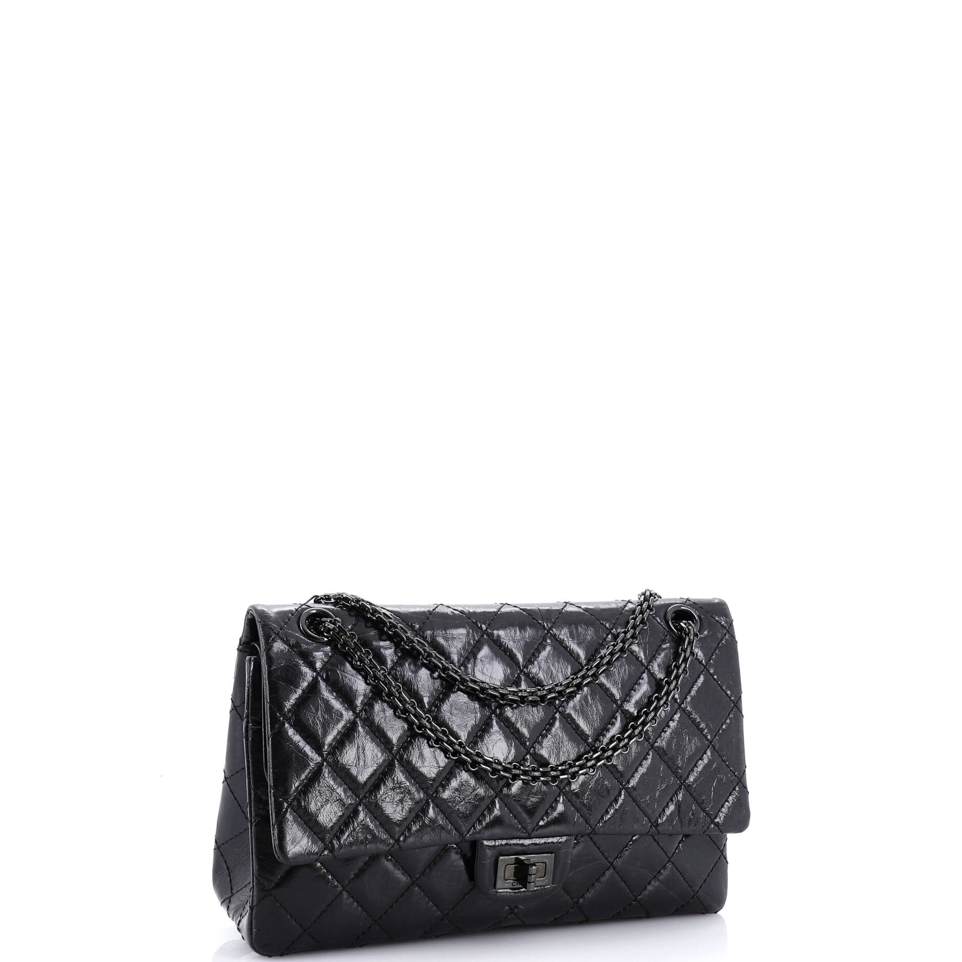 シャネル ソーブラック リイシュー 2.55 フラップバッグ キルティング グレーズドカーフスキン 225