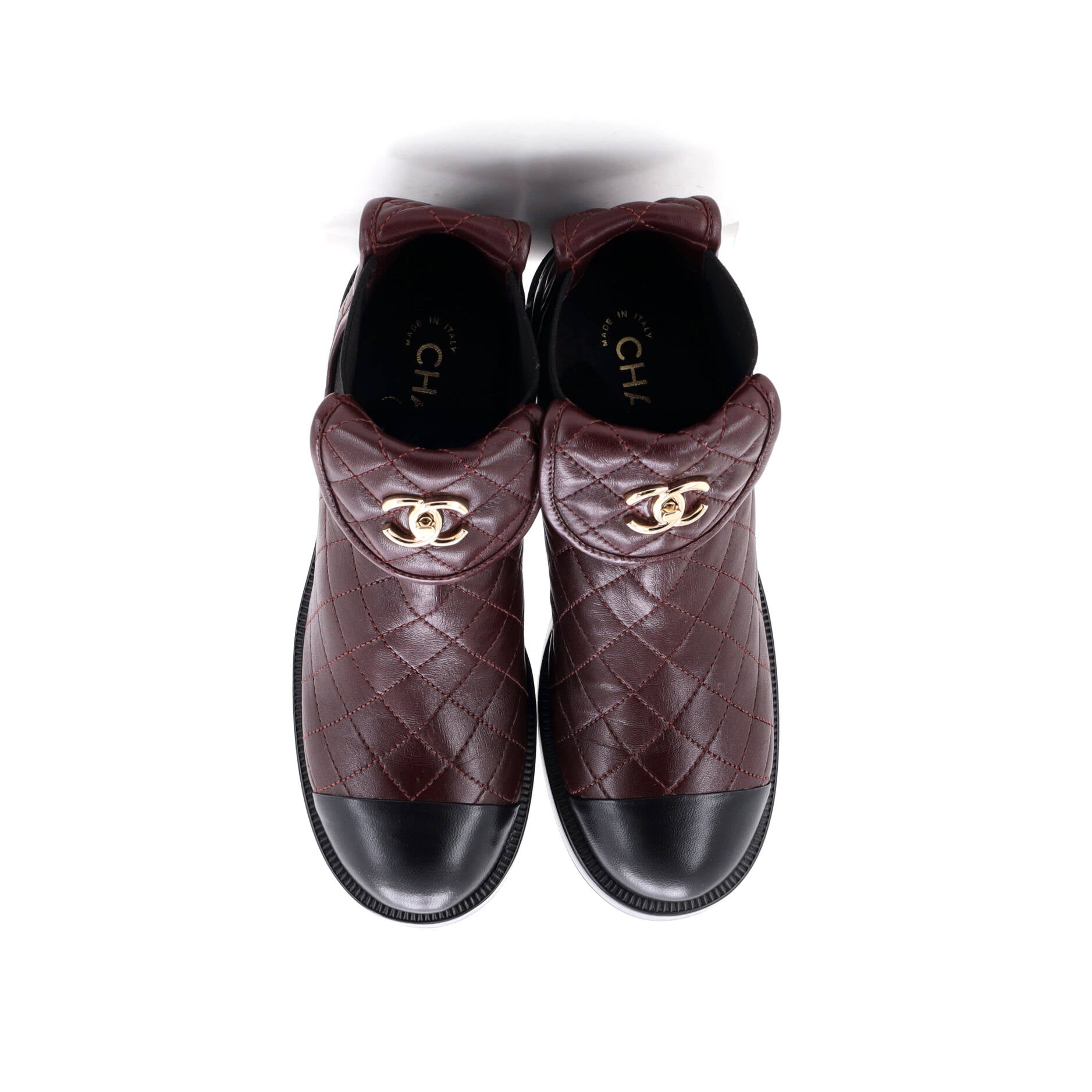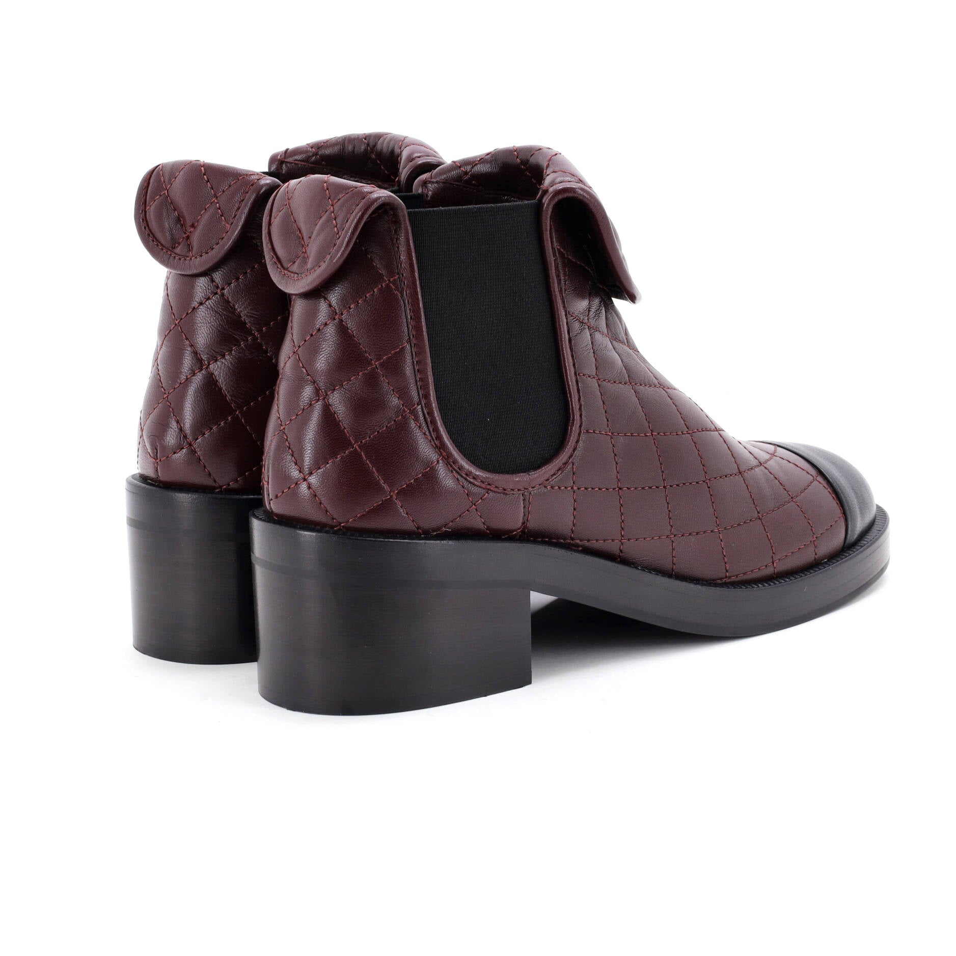 シャネル レディース CCターンロック キャップトゥ アンクルブーツ キルティングレザー