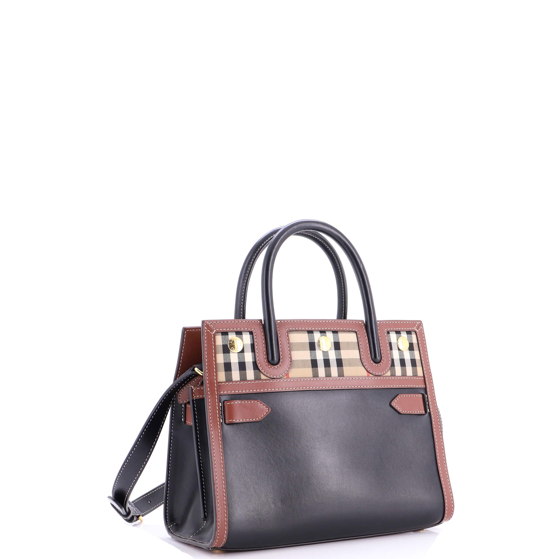 バーバリータイトル ツーハンドル トート レザー ヴィンテージチェック キャンバス ミニ