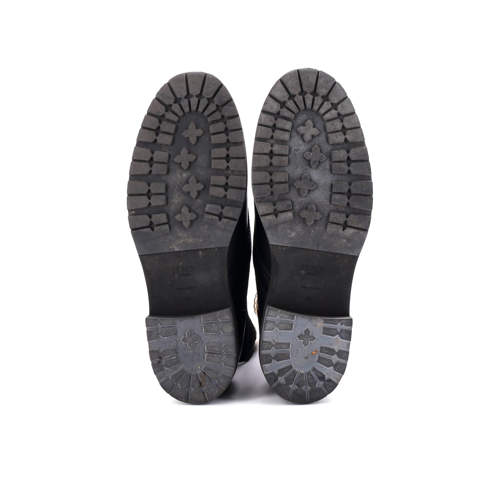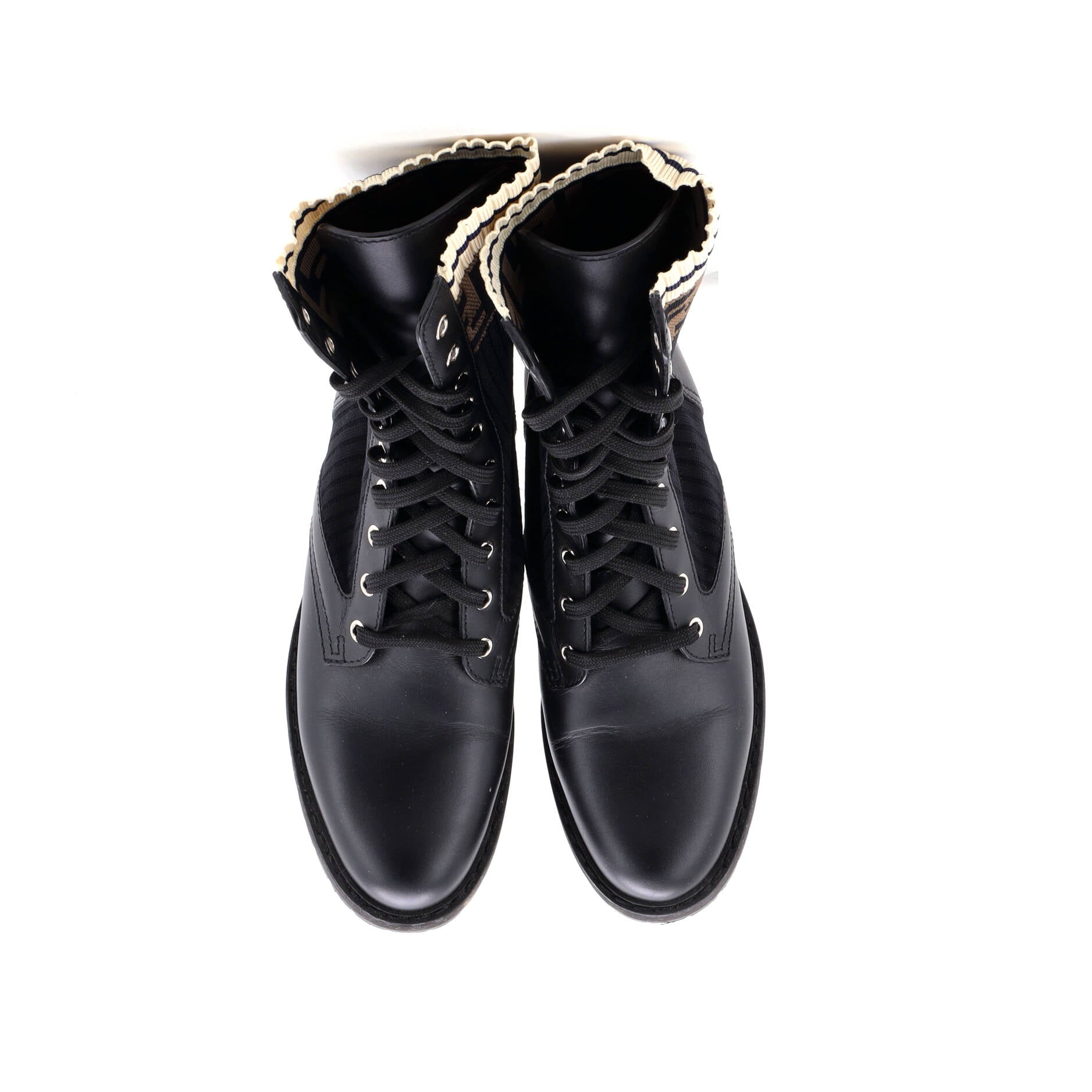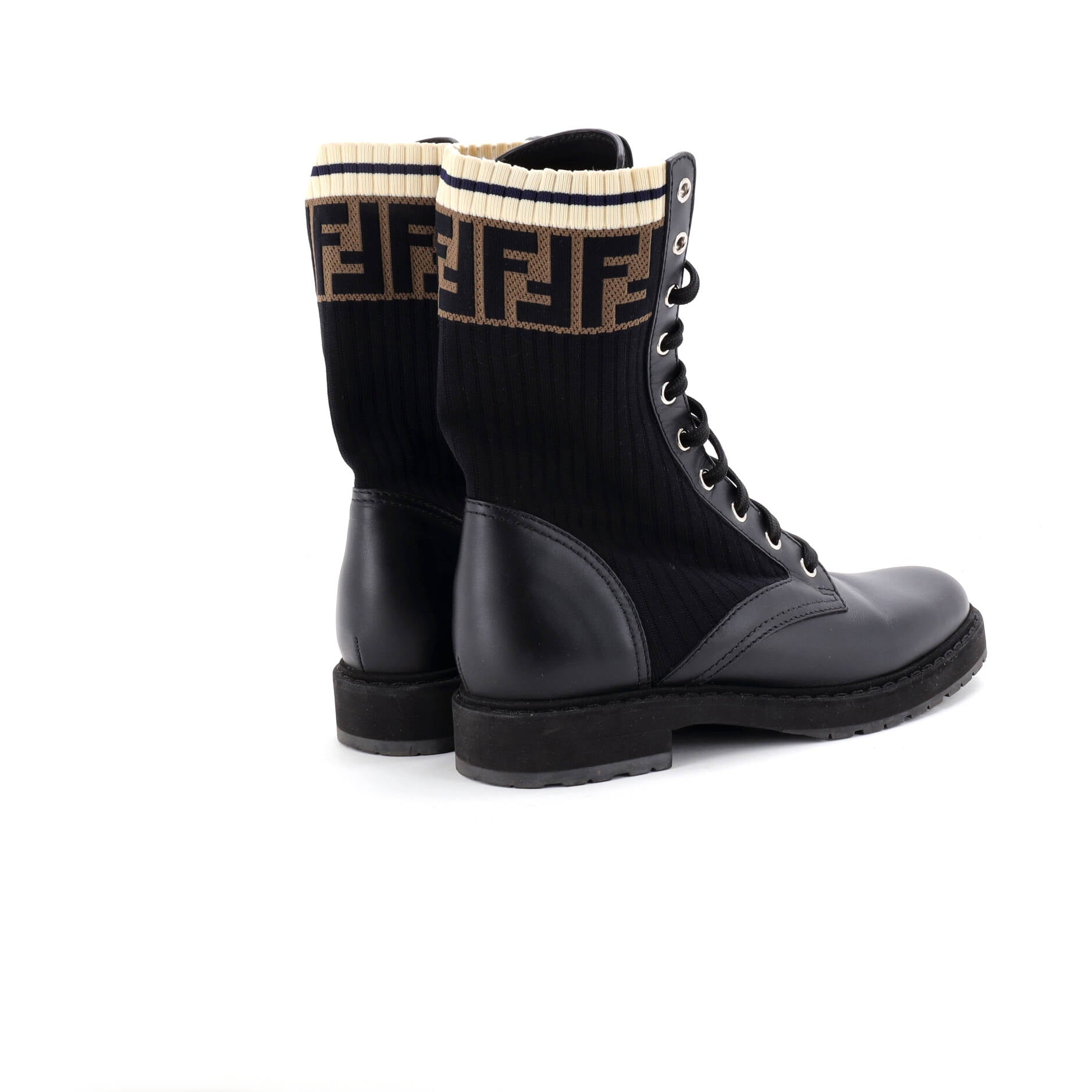フェンディレディース ロココ コンバットブーツ レザー、ニットストレッチファブリック、ズッカ柄