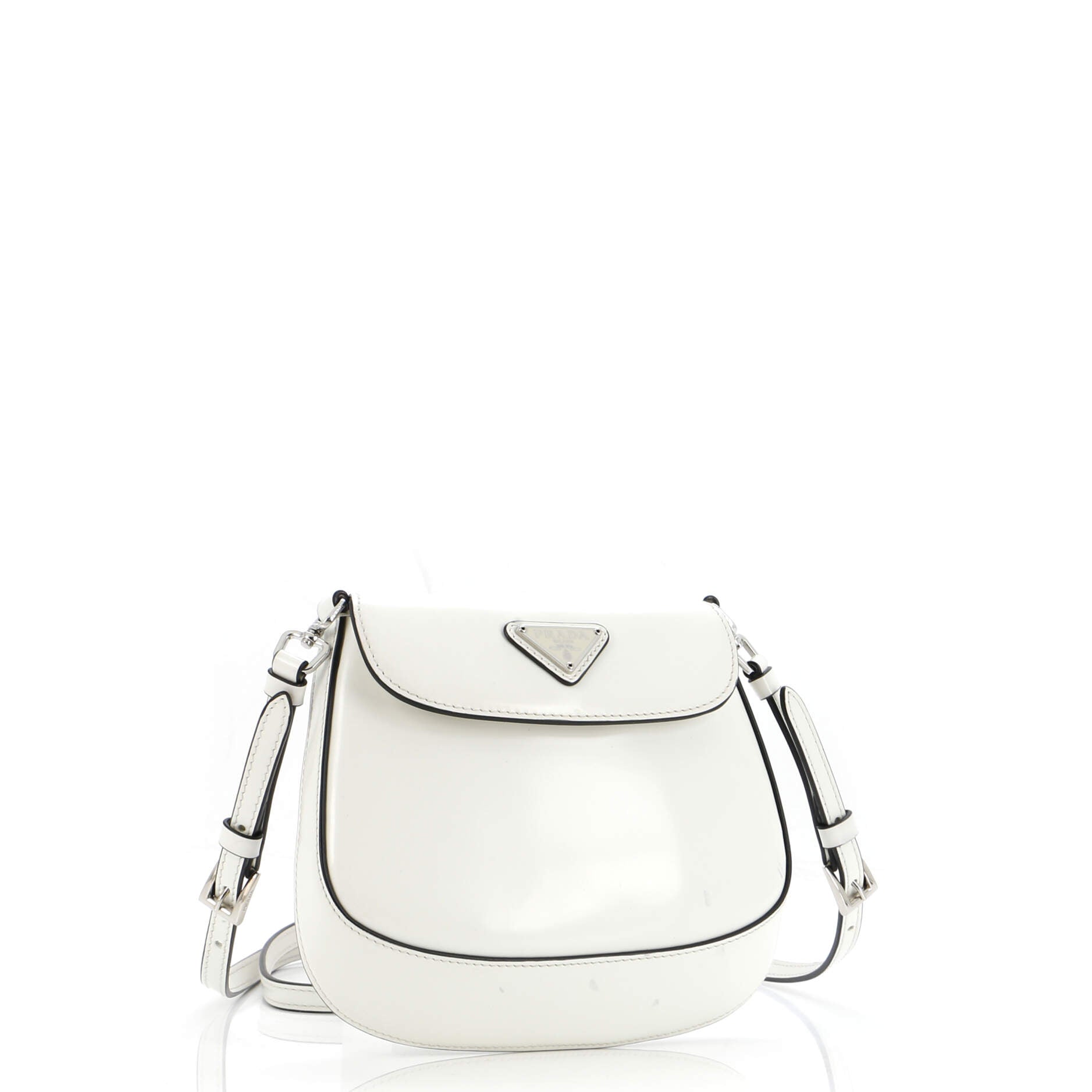 プラダ トライアングルロゴ フラップ クロスボディバッグ エンボス加工 サフィアーノレザー スモール