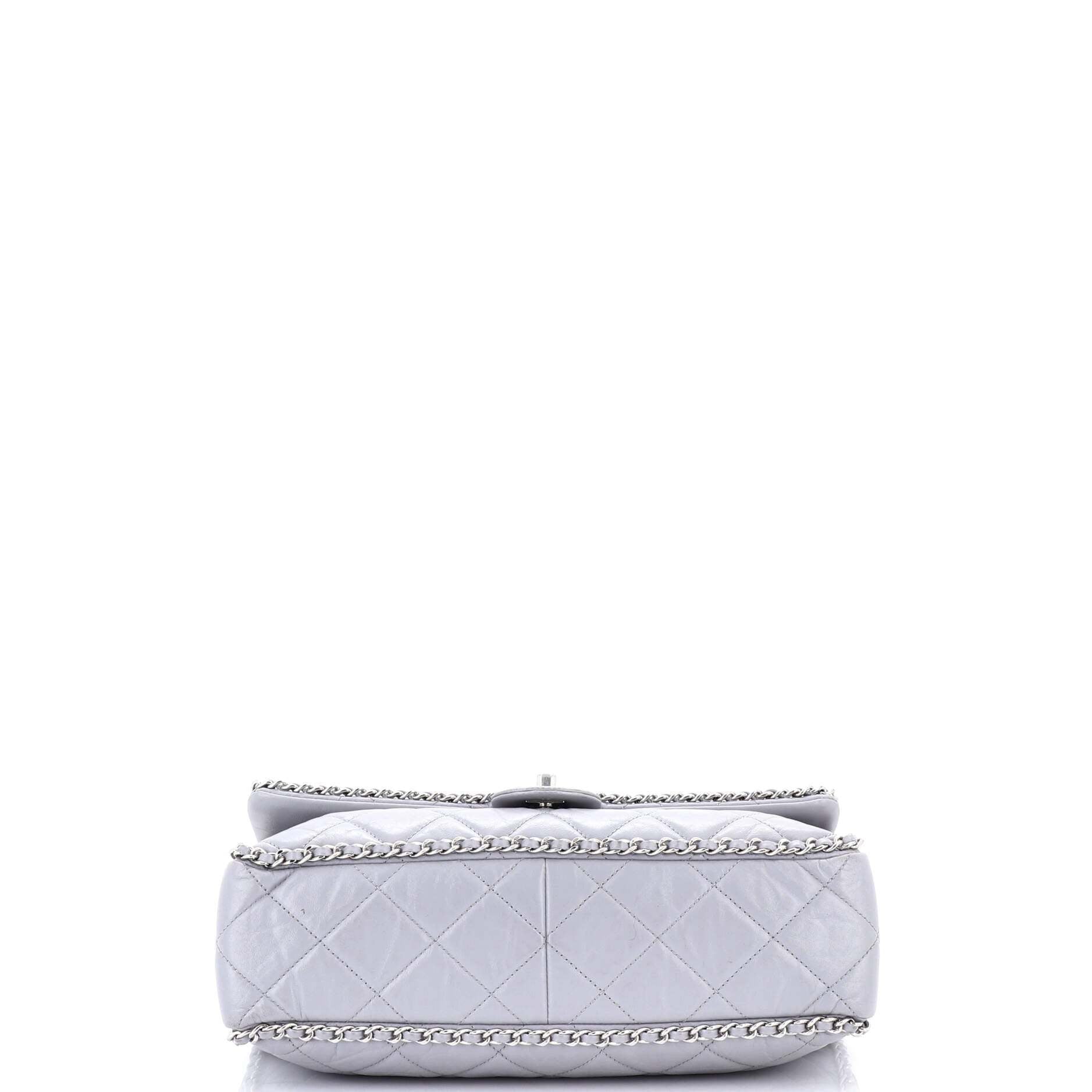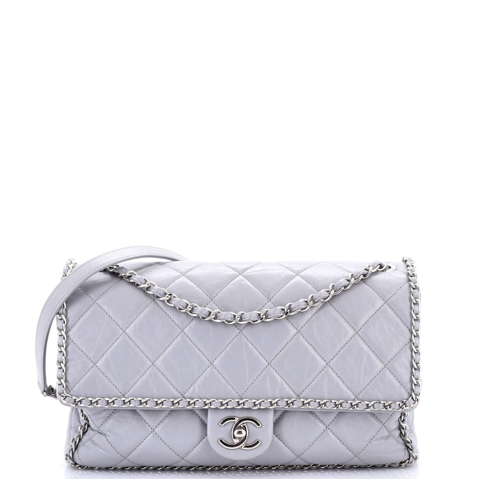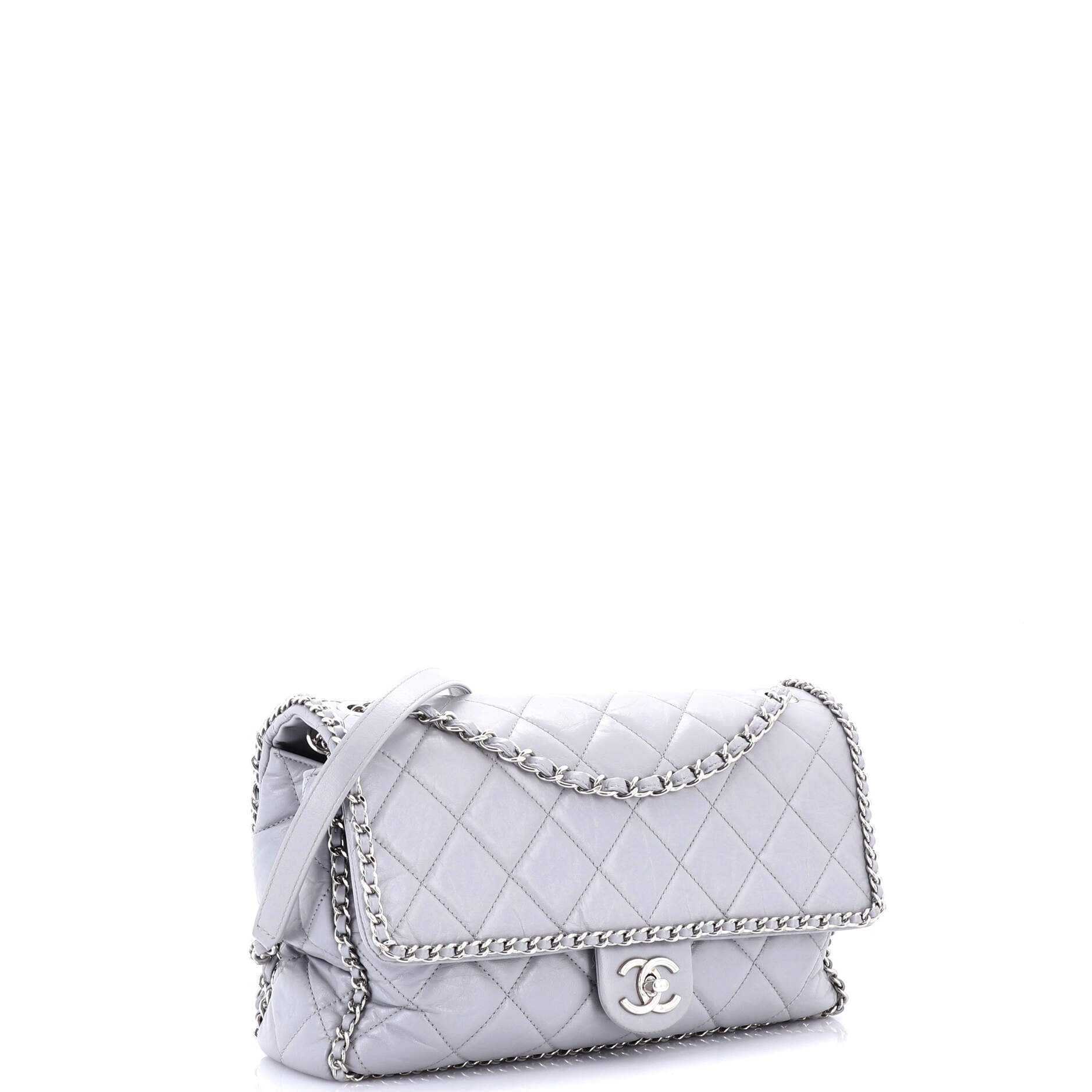 シャネル ショルダーバッグ シャネルランニングチェーン付きフラップバッグ キルティング加工 しわ加工 カーフスキン ラージ
