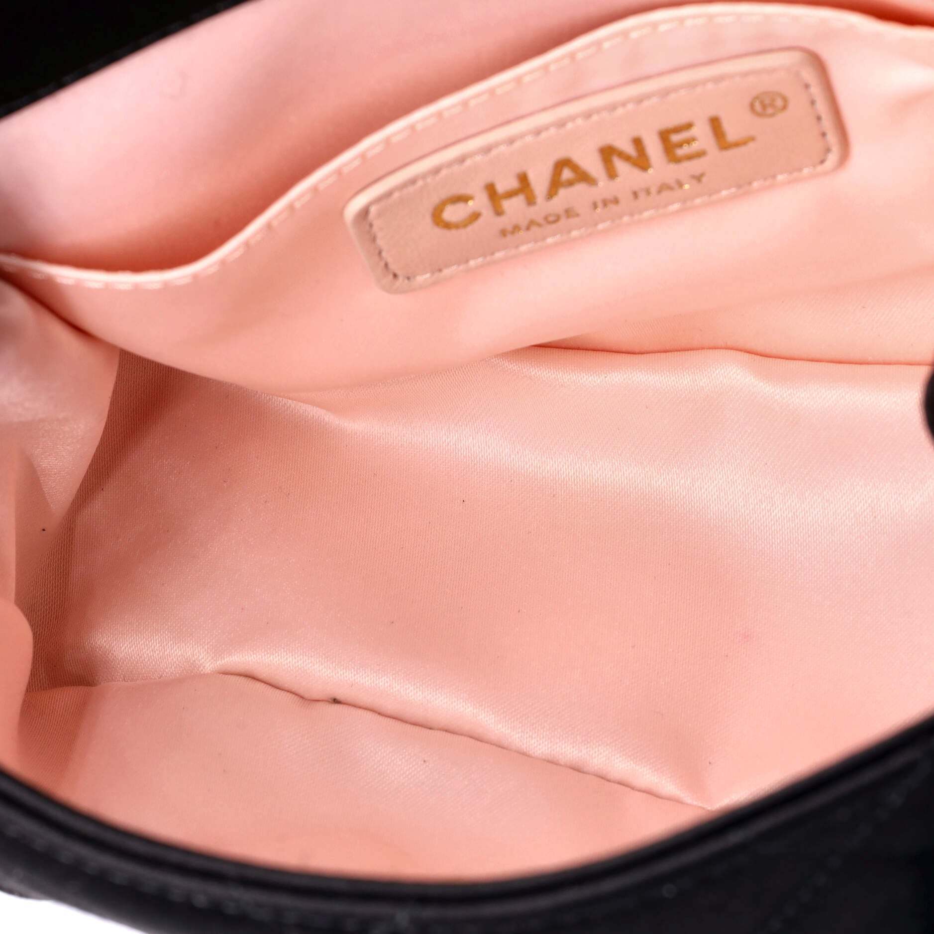 シャネル ショルダーバッグ シャネル オーバルロゴ チェーン フラップバッグ キルティング サテン クリスタル付き ミニ