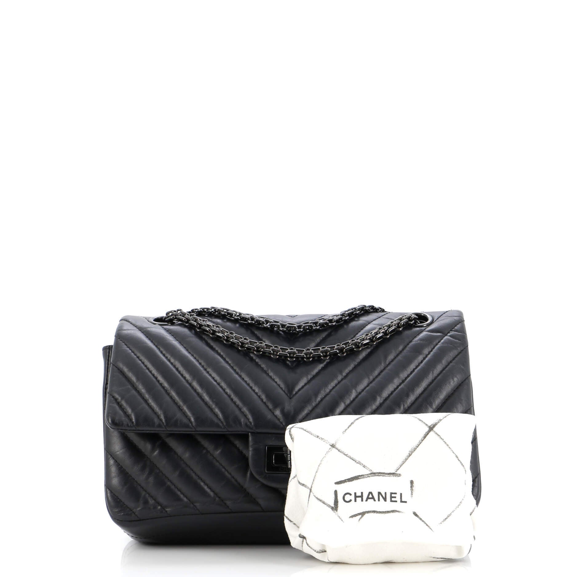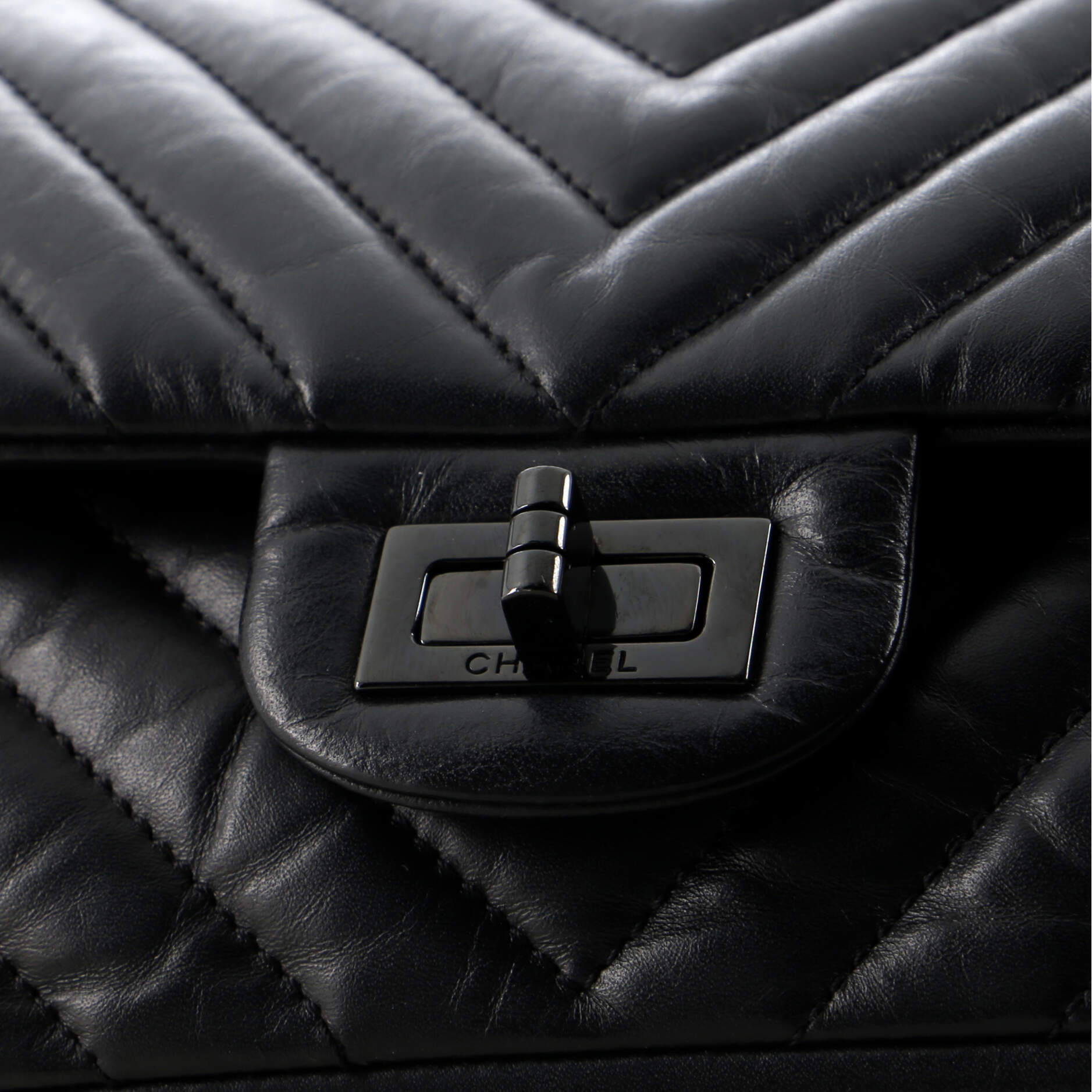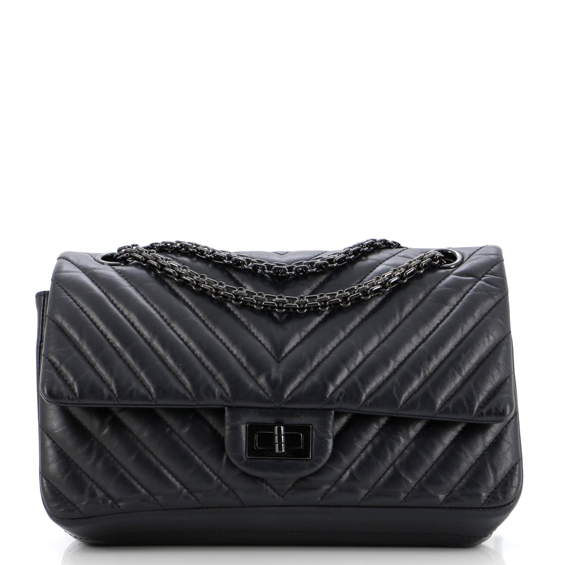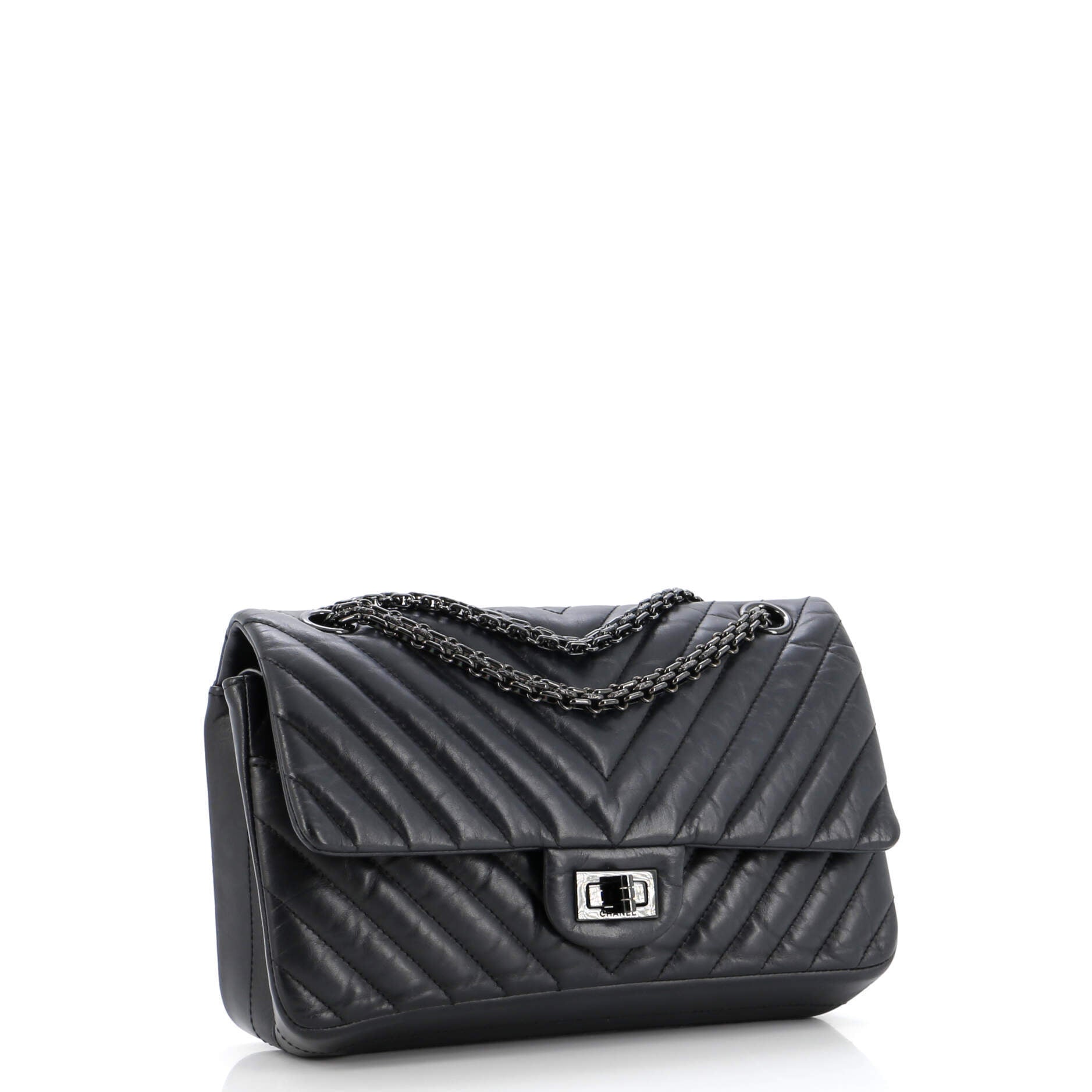 シャネル ショルダーバッグ シャネルソーブラック リイシュー 2.55 フラップバッグ シェブロン エイジドカーフスキン シャネル225