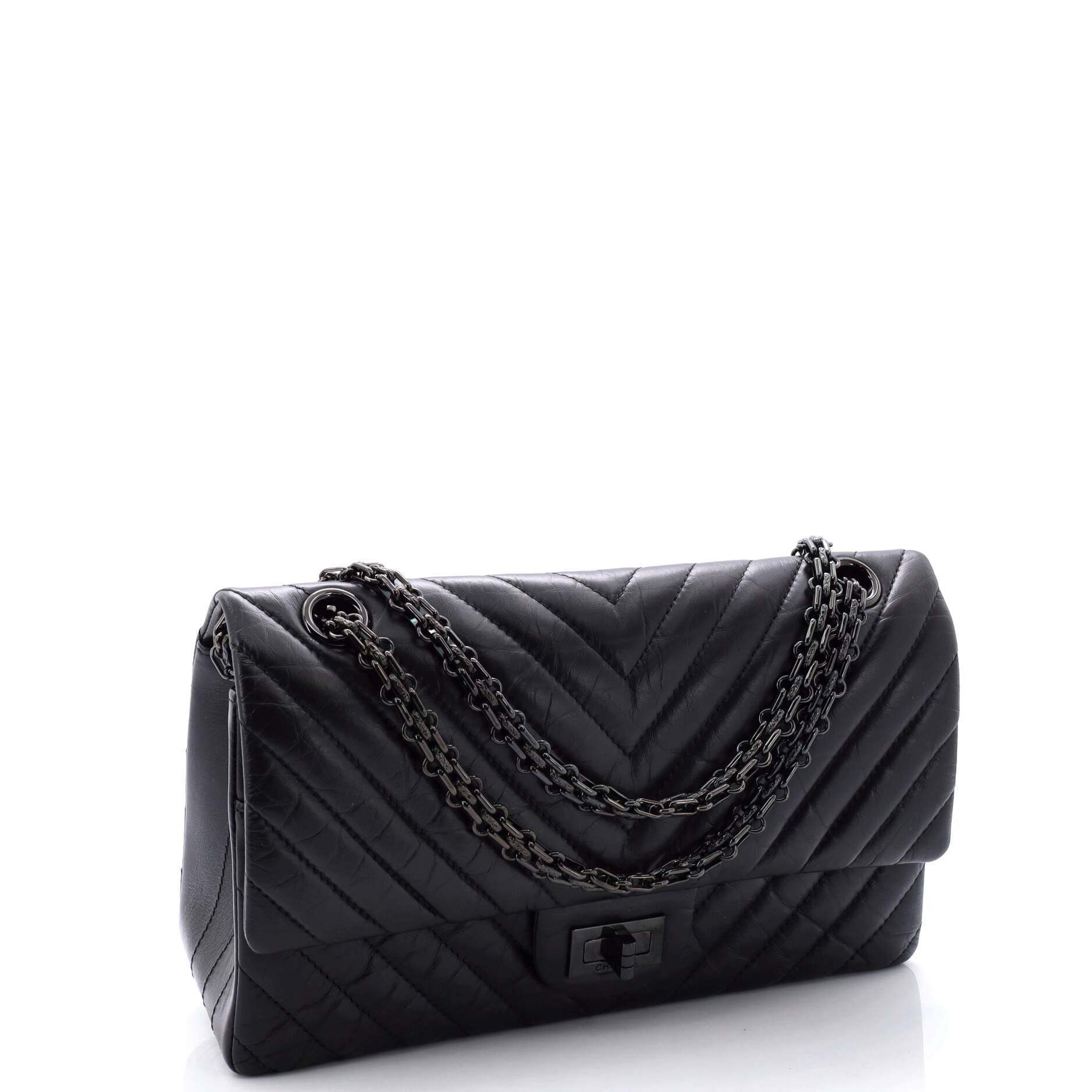 シャネル ショルダーバッグ シャネルソーブラック リイシュー 2.55 フラップバッグ シェブロン エイジドカーフスキン シャネル225