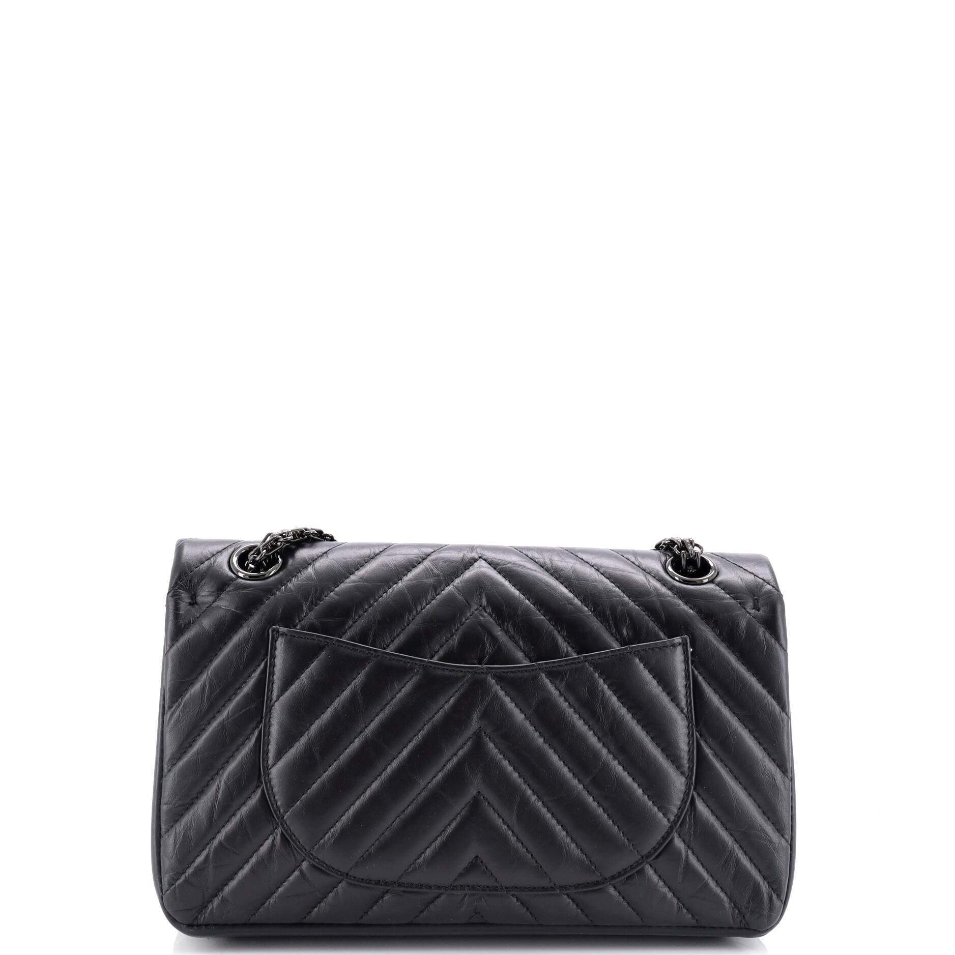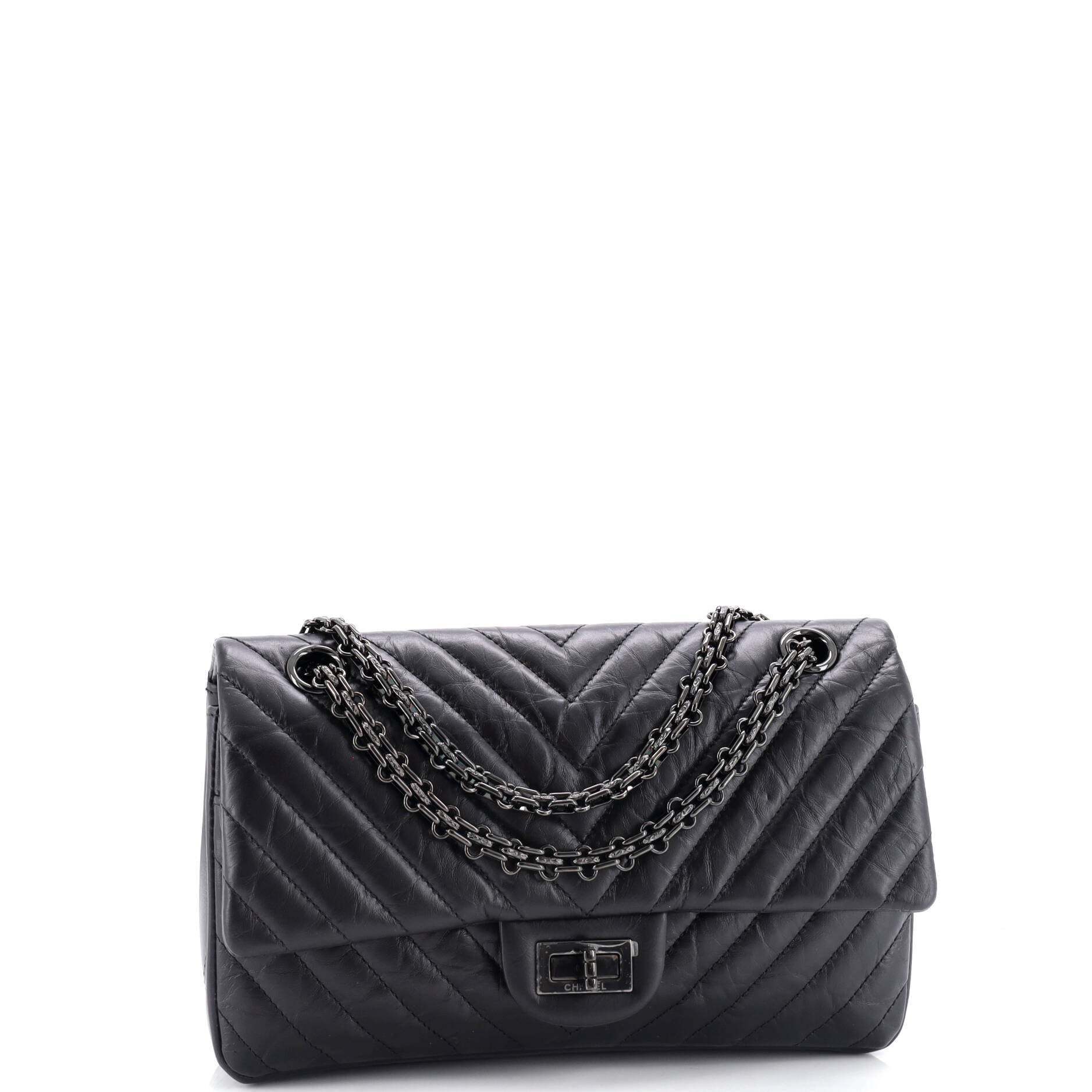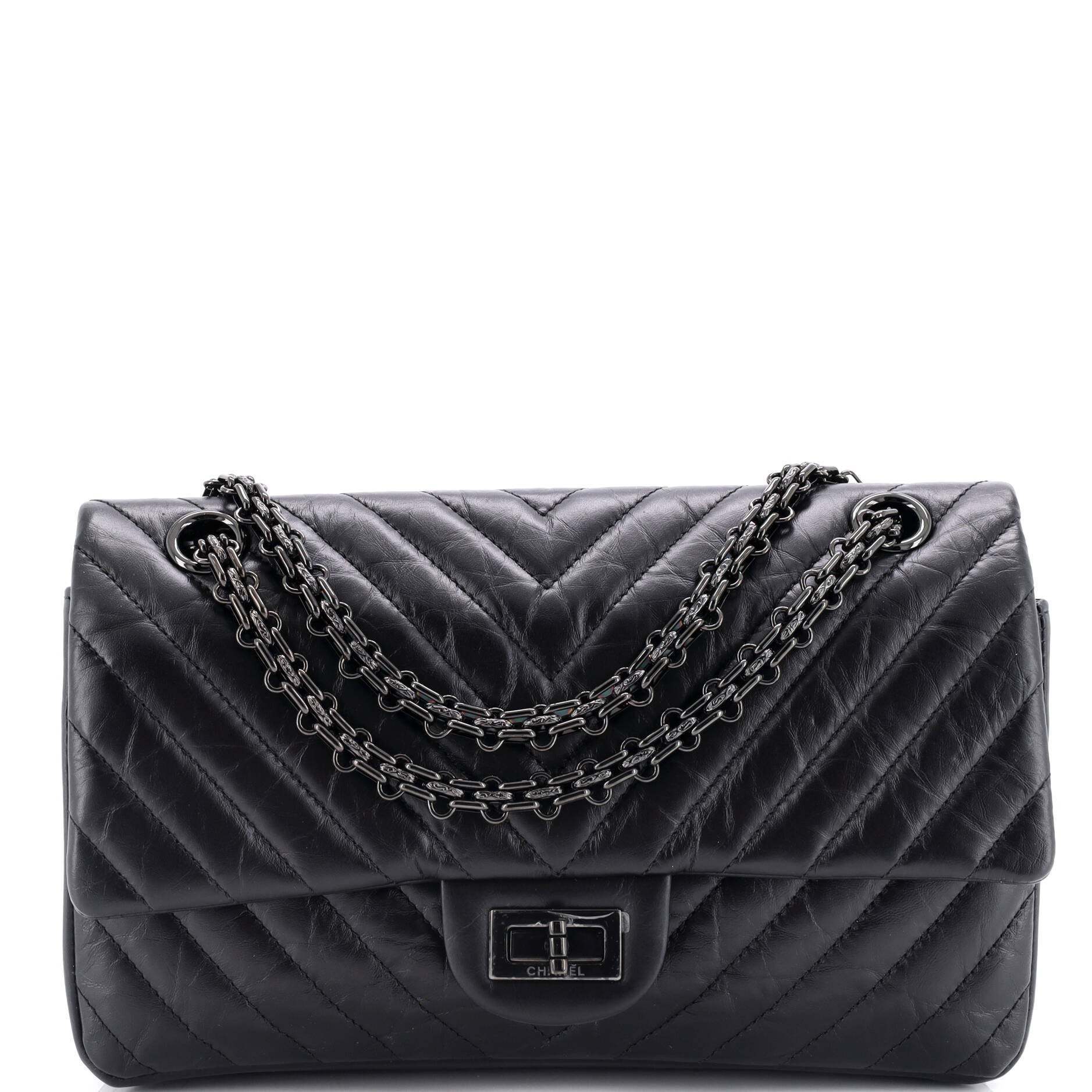 シャネル ショルダーバッグ シャネルソーブラック リイシュー 2.55 フラップバッグ シェブロン エイジドカーフスキン シャネル225