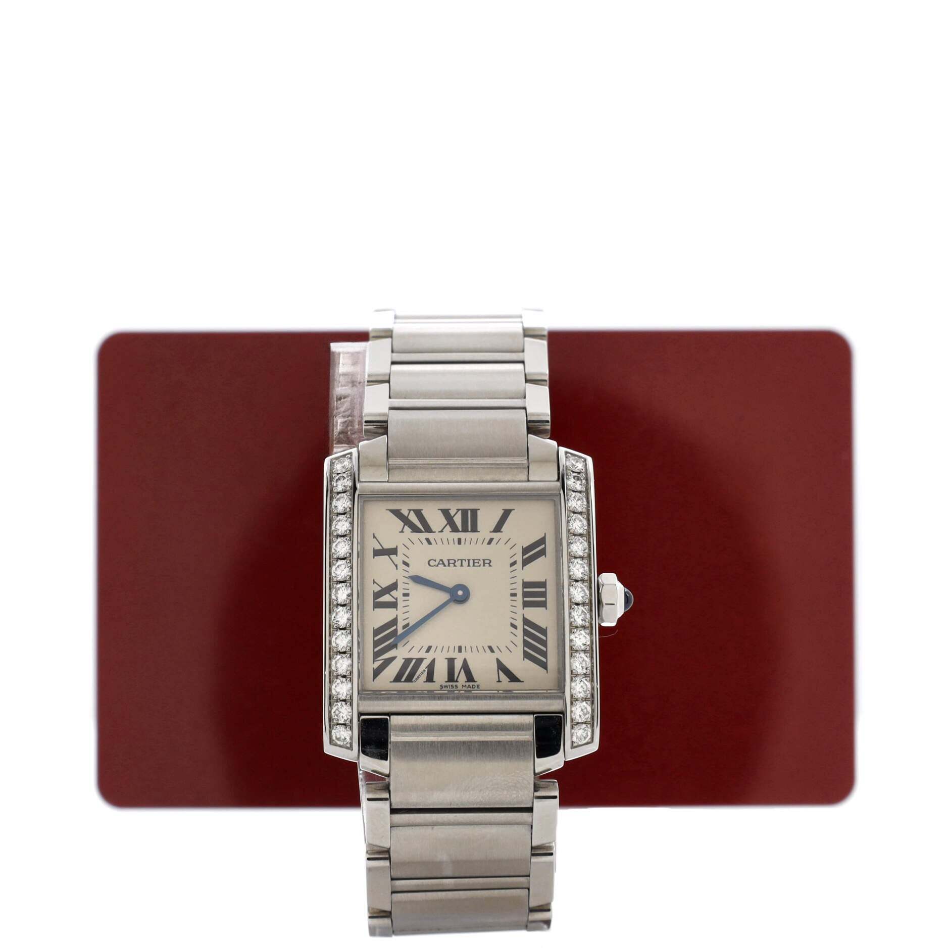 カルティエ タンク フランセーズ クォーツウォッチ ステンレススチール ダイヤモンドベゼル 25
