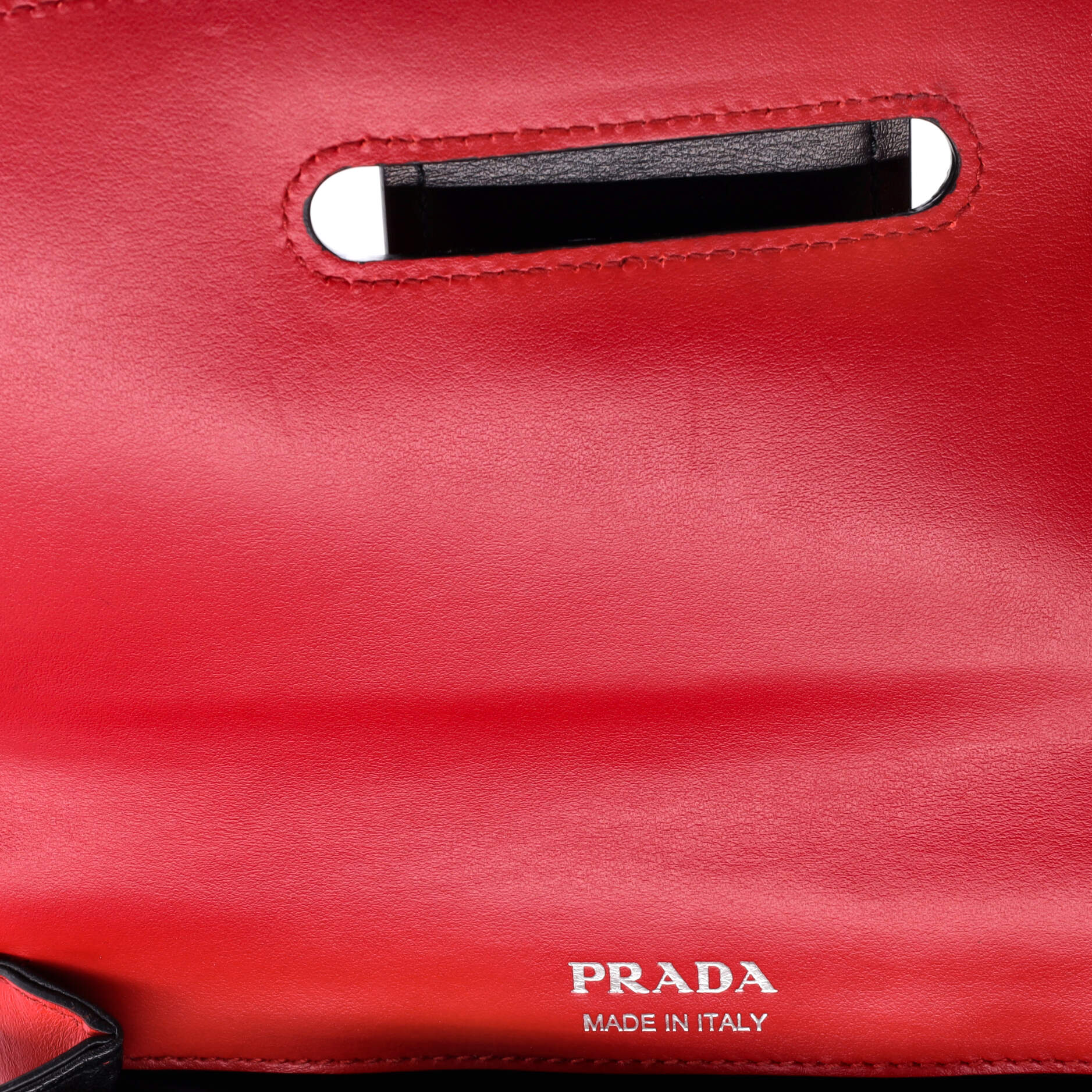 プラダ トライアングル ロゴ リストレット ポーチ エンボス レザー