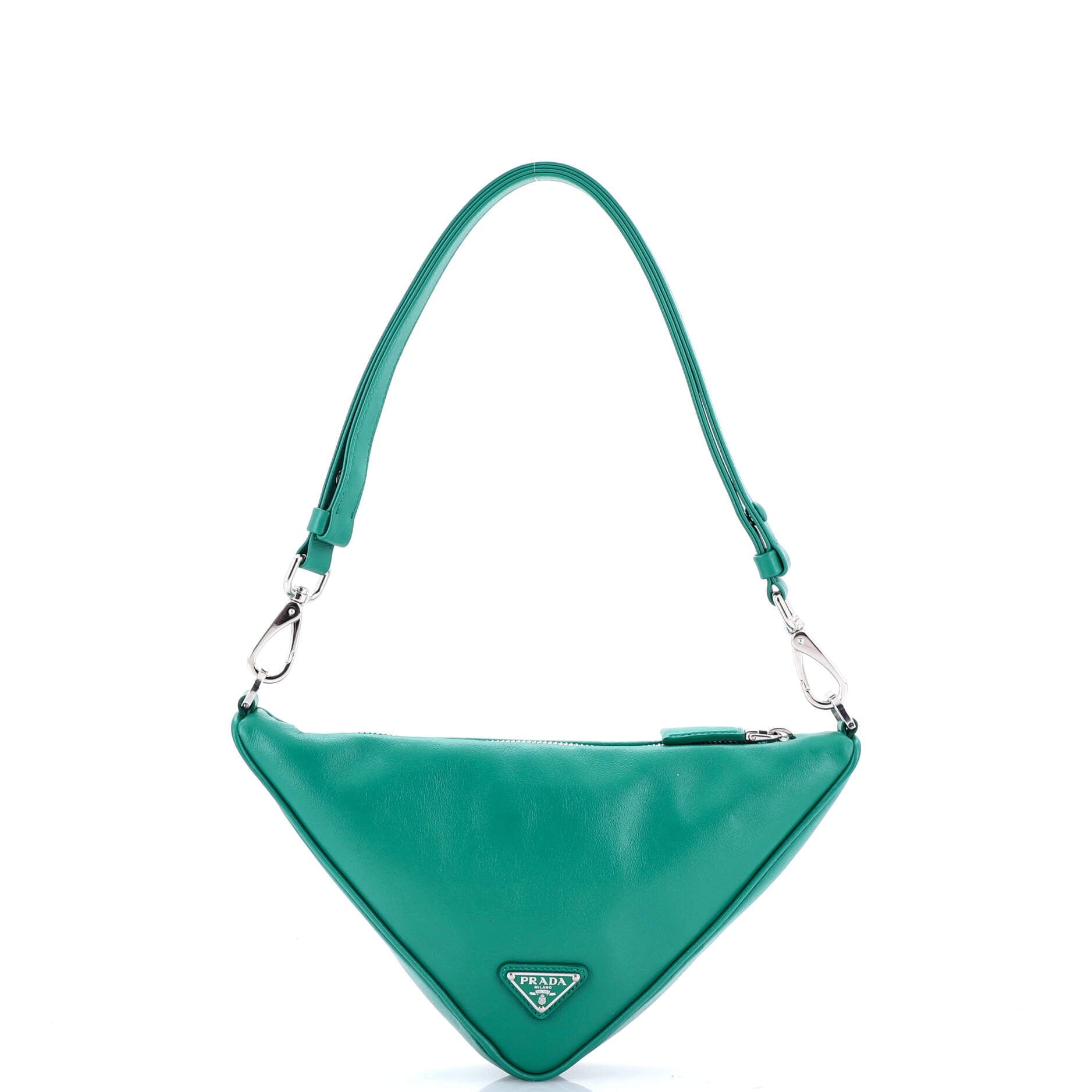 プラダ トライアングルロゴ ジップチェーン クロスボディバッグ エンボスレザー スモール