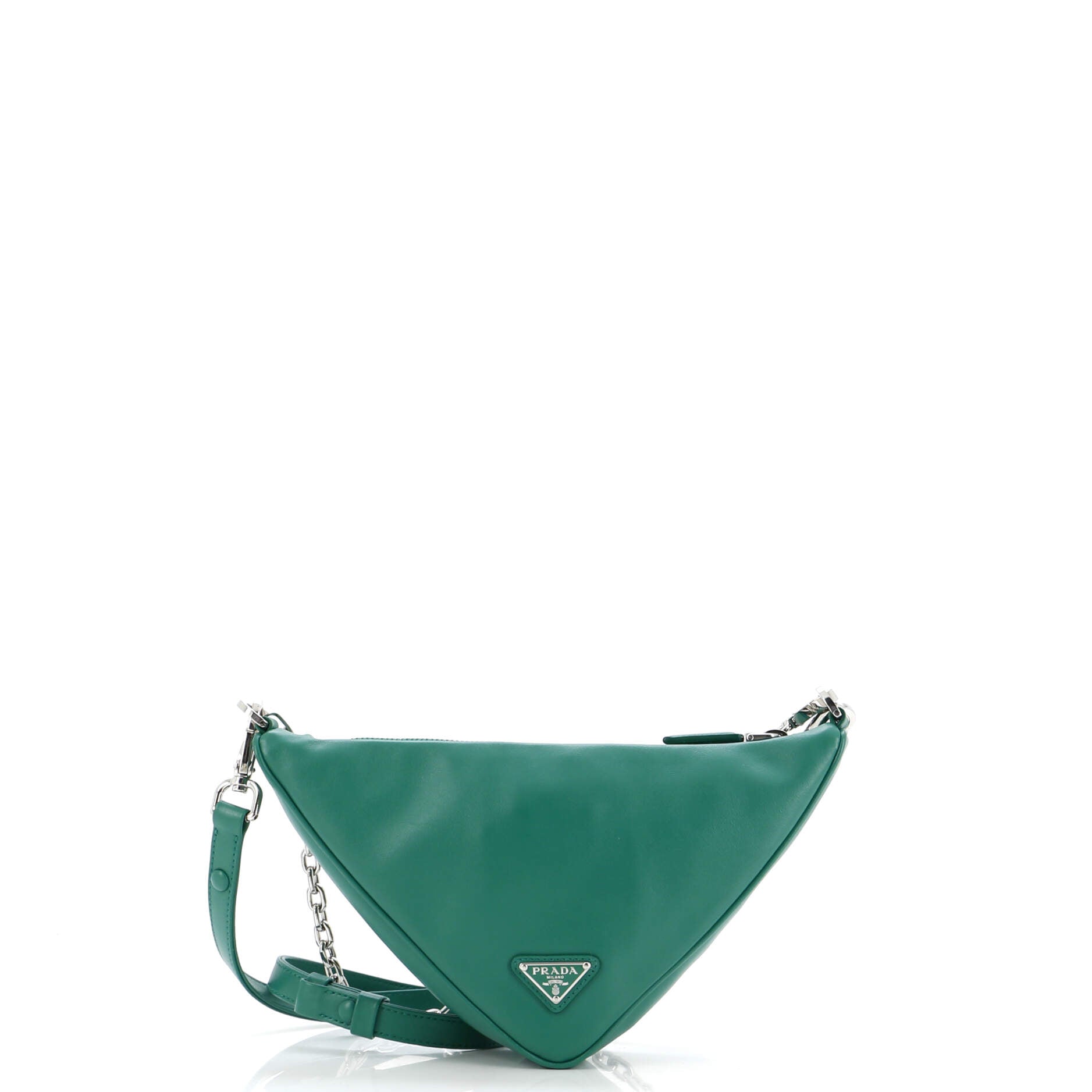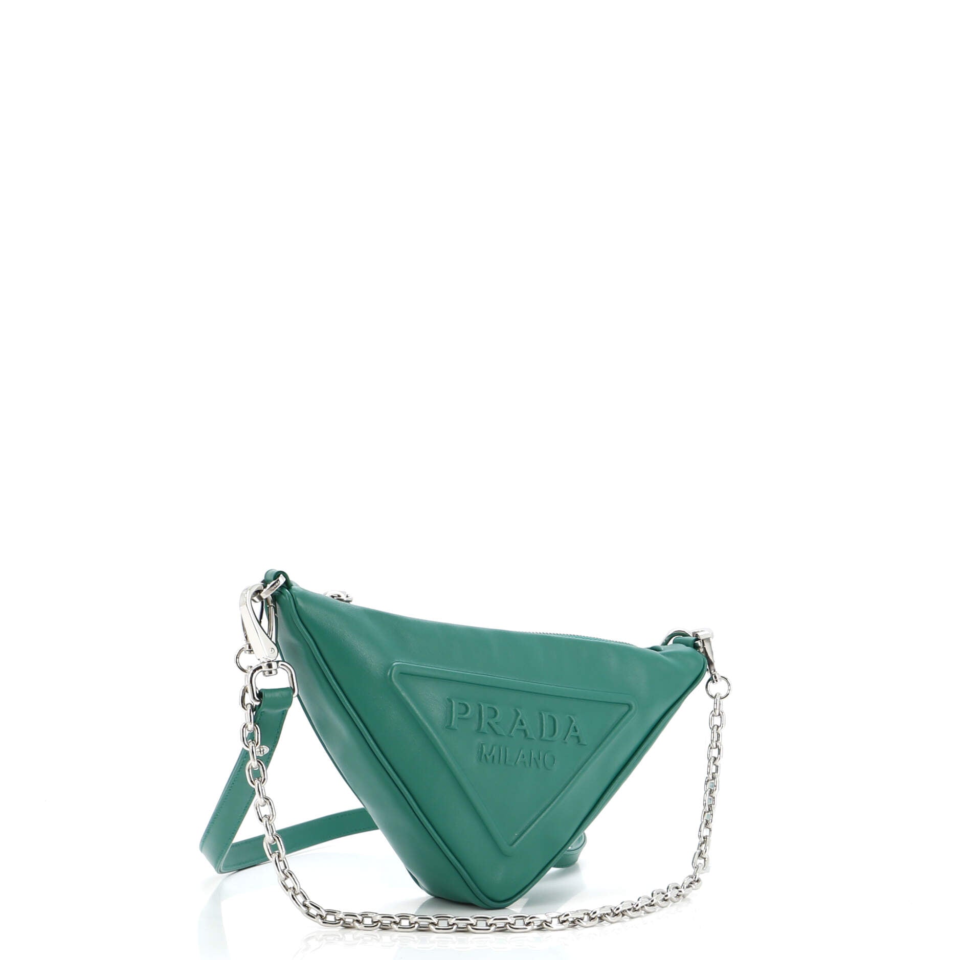 プラダ トライアングルロゴ ジップチェーン クロスボディバッグ エンボスレザー スモール
