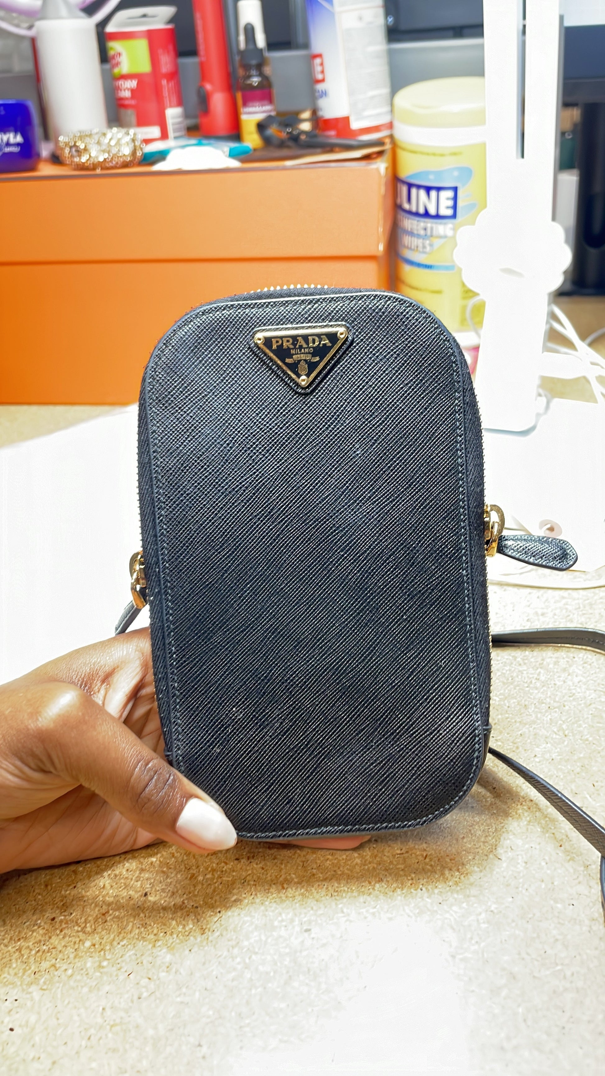プラダ ジップ フォンホルダー クロスボディバッグ サフィアーノレザー