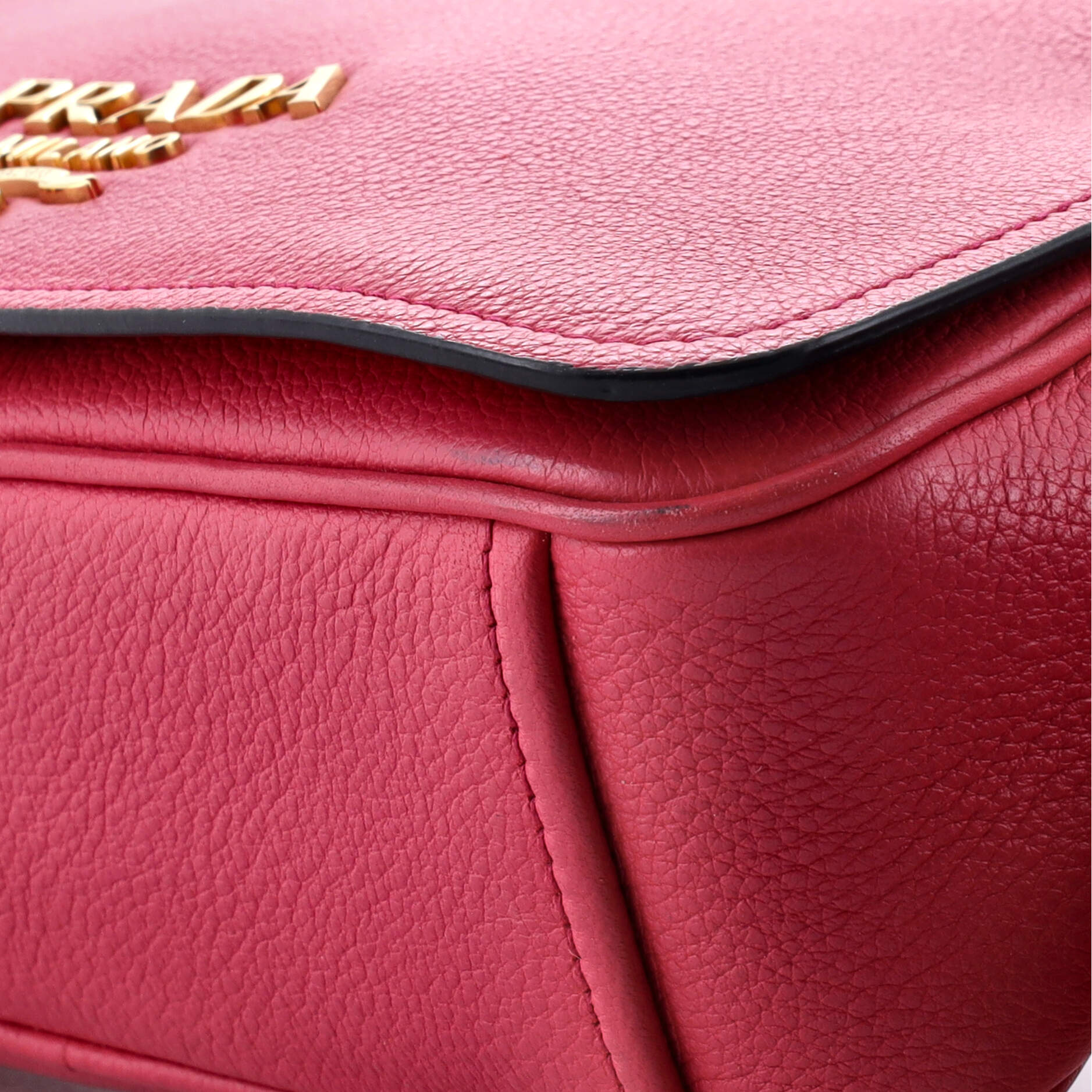 プラダ トライアングルロゴ フラップ クロスボディバッグ エンボス加工 サフィアーノレザー スモール