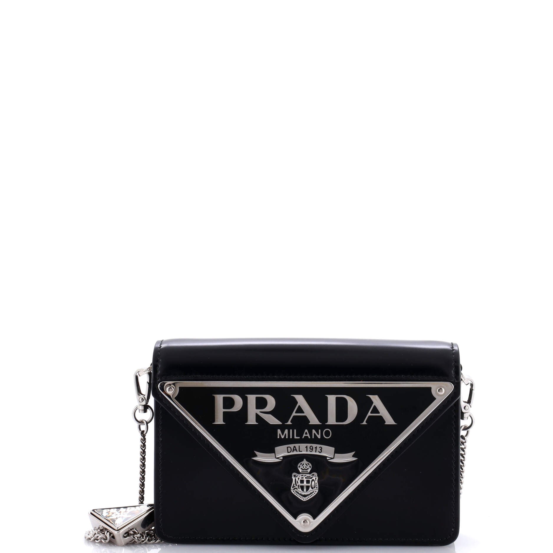 プラダ マキシ トライアングル ロゴ チェーン フラップバッグ ブラッシュドレザー スモール