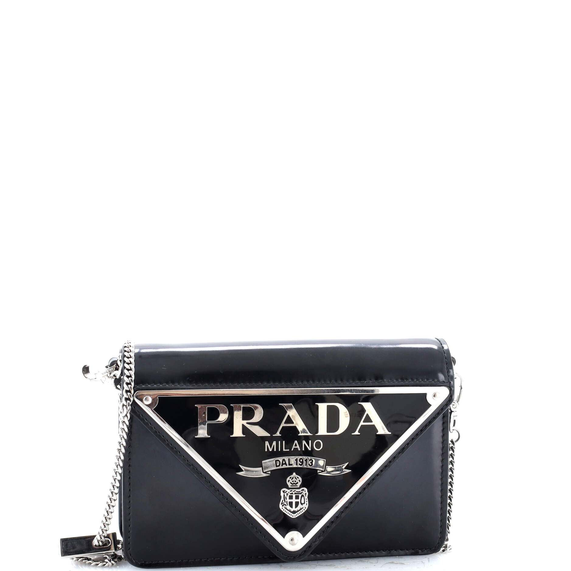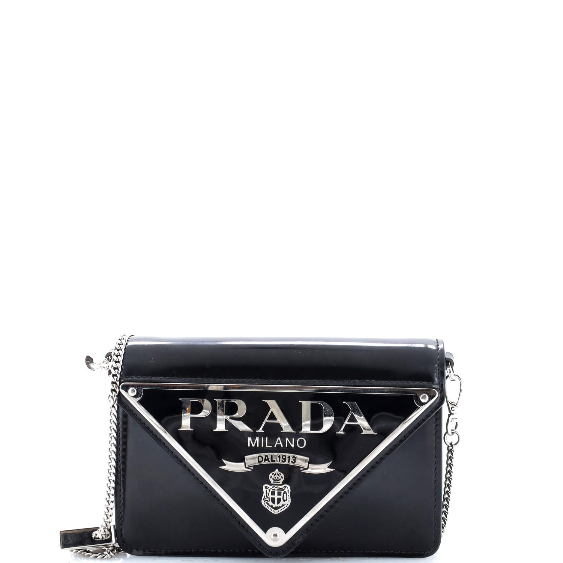 プラダ マキシ トライアングル ロゴ チェーン フラップバッグ ブラッシュドレザー スモール