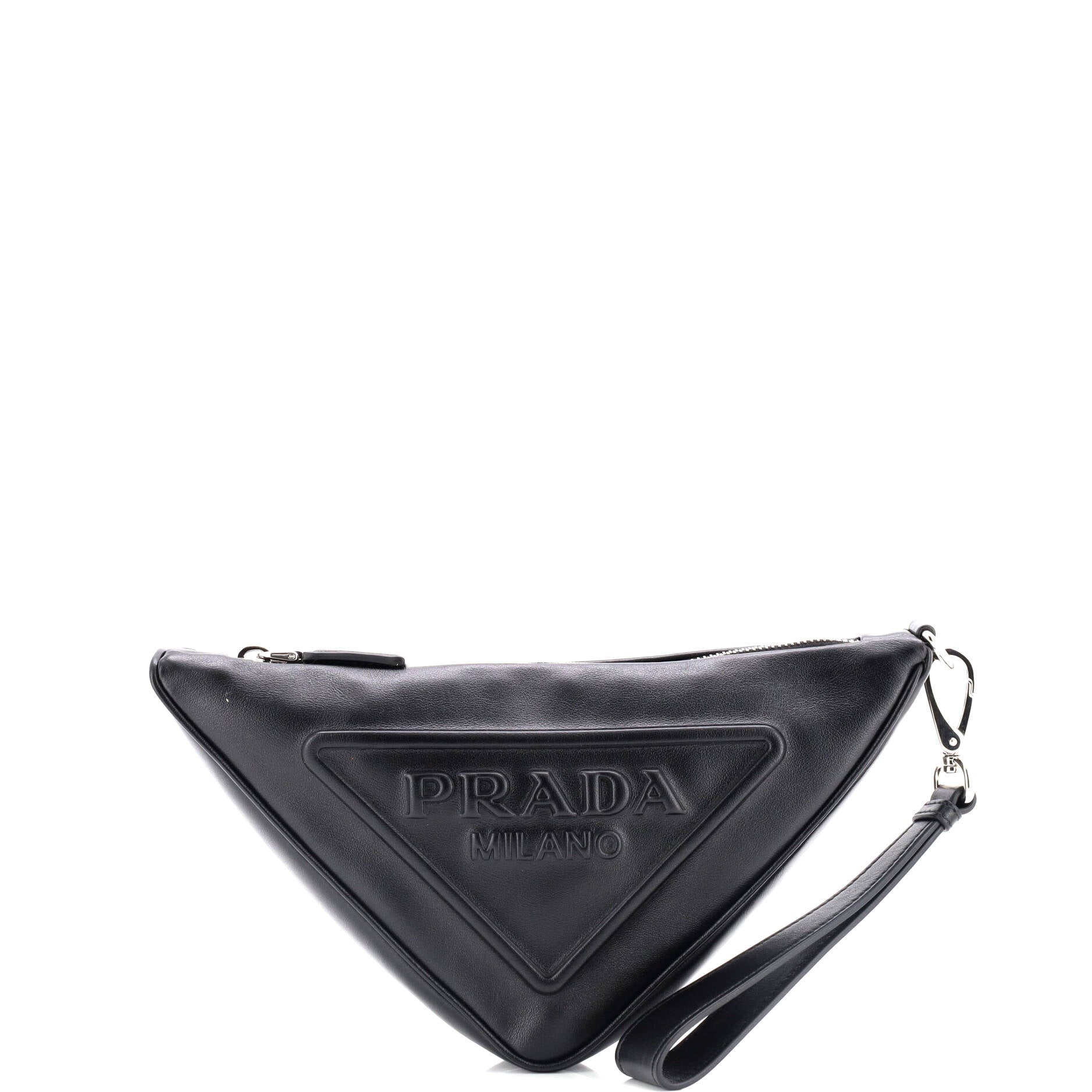 プラダ トライアングル ロゴ リストレット ポーチ エンボス レザー