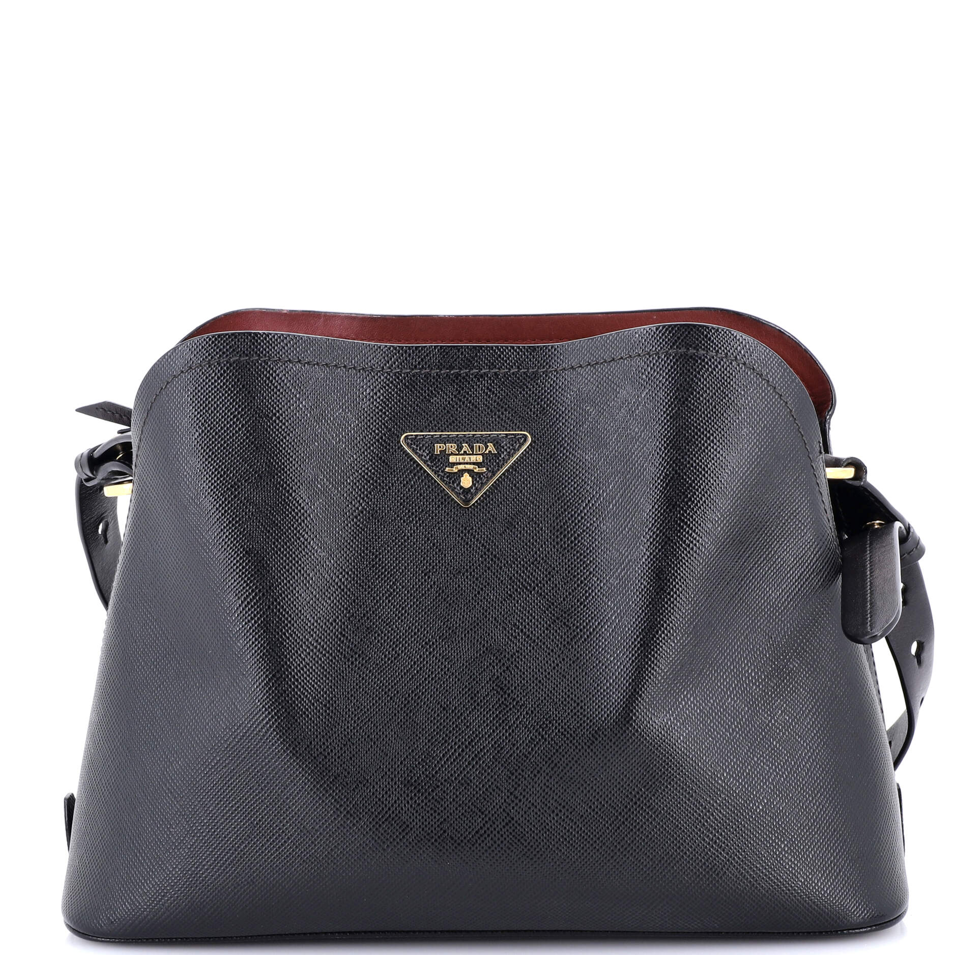 プラダ トライアングルロゴ フラップ クロスボディバッグ エンボス加工 サフィアーノレザー スモール
