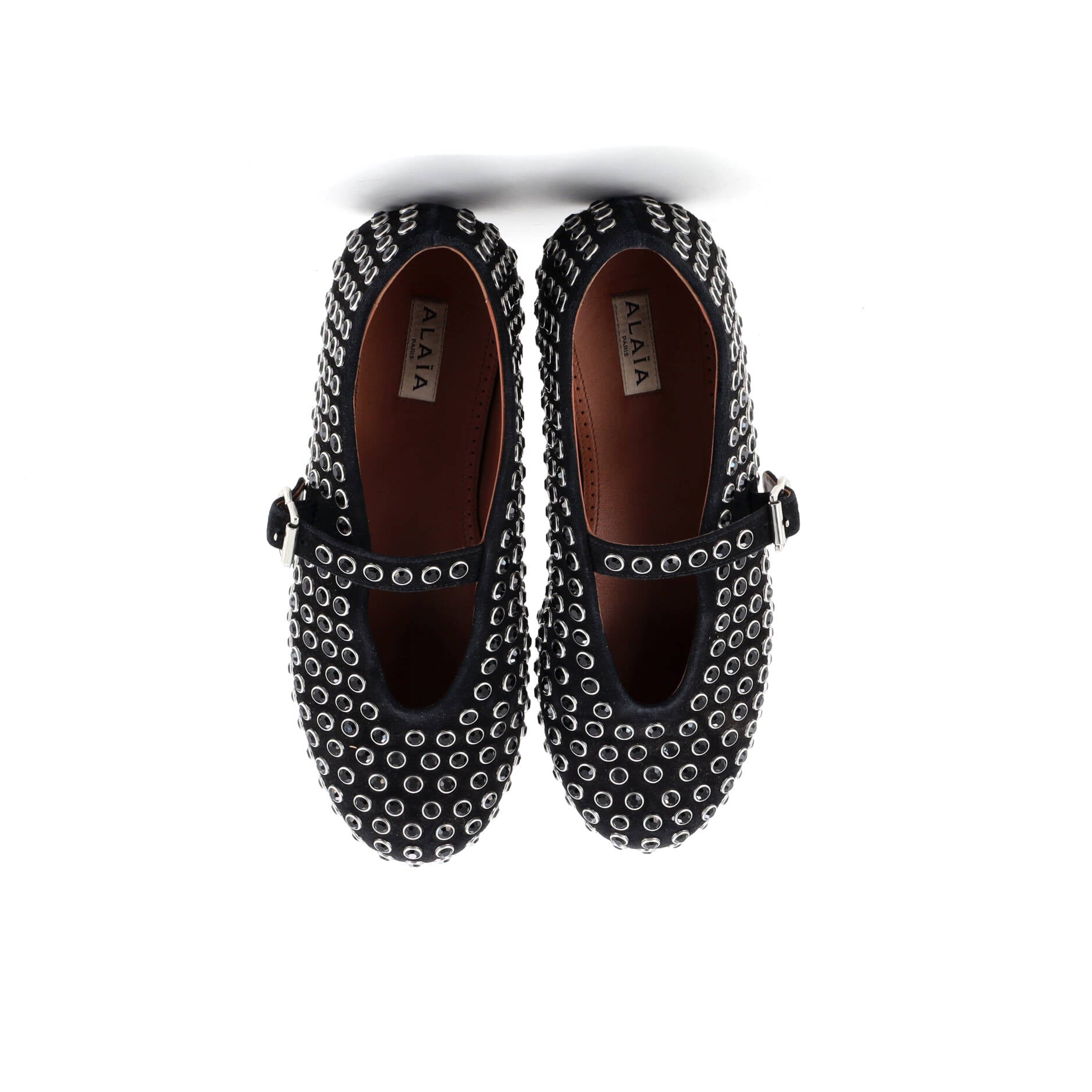Alaia レディース バックル バレリーナ フラット シューズ スエード クリスタル付き
