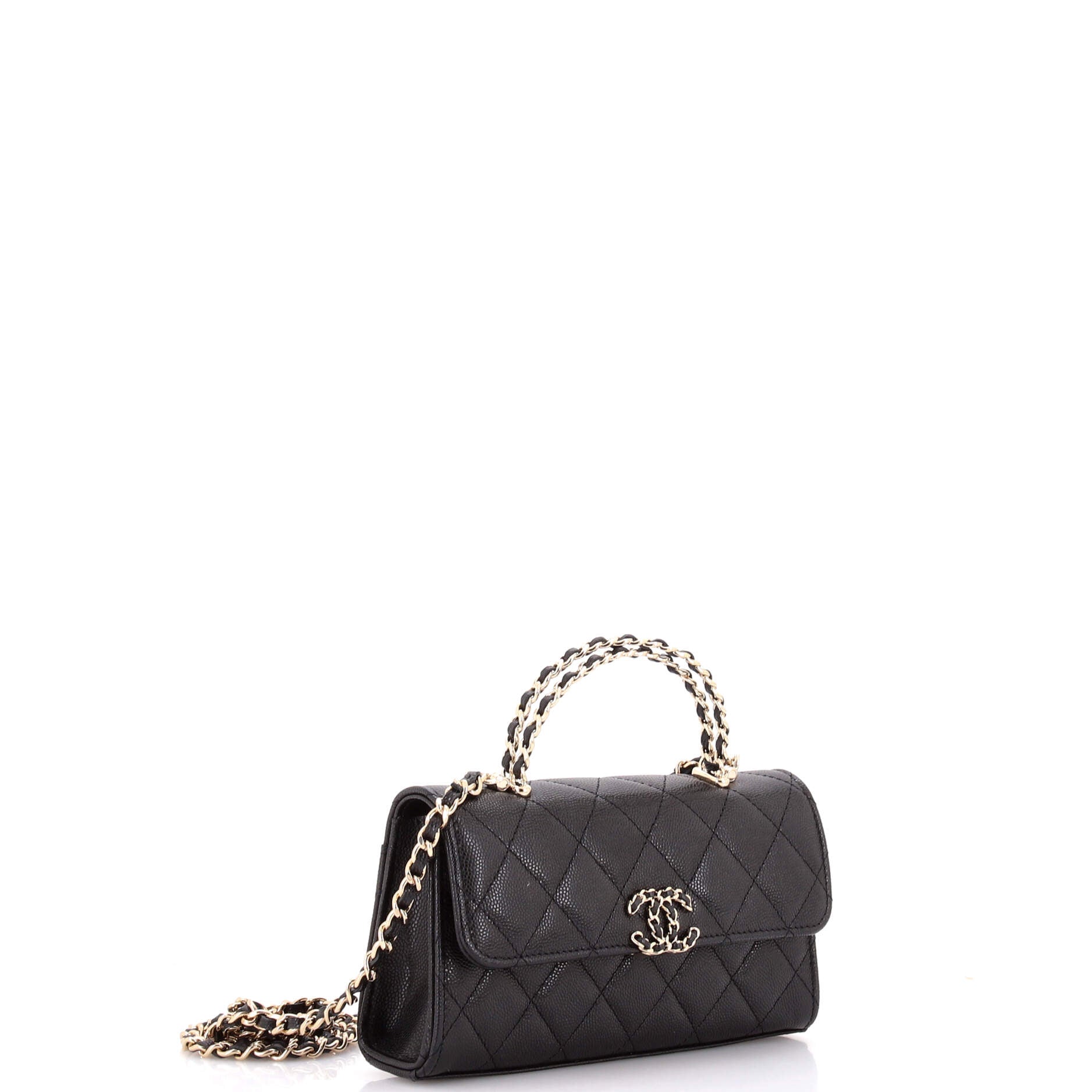 シャネル トップハンドル フォン ホルダー チェーン キルティング キャビア付き