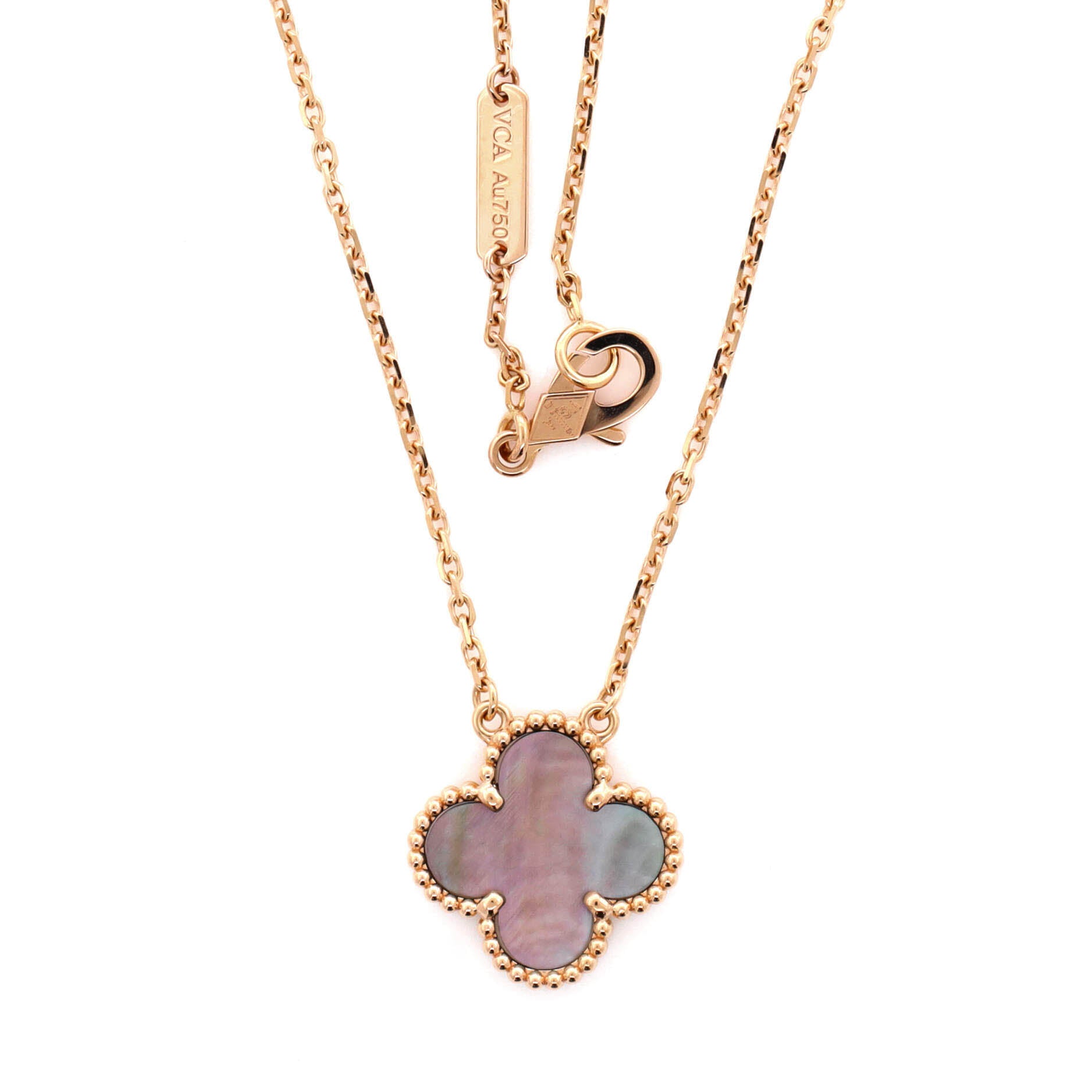 ヴァン クリーフ&アーペル ヴィンテージ アルハンブラ ペンダントネックレス 18Kローズゴールド&グレーマザーオブパール